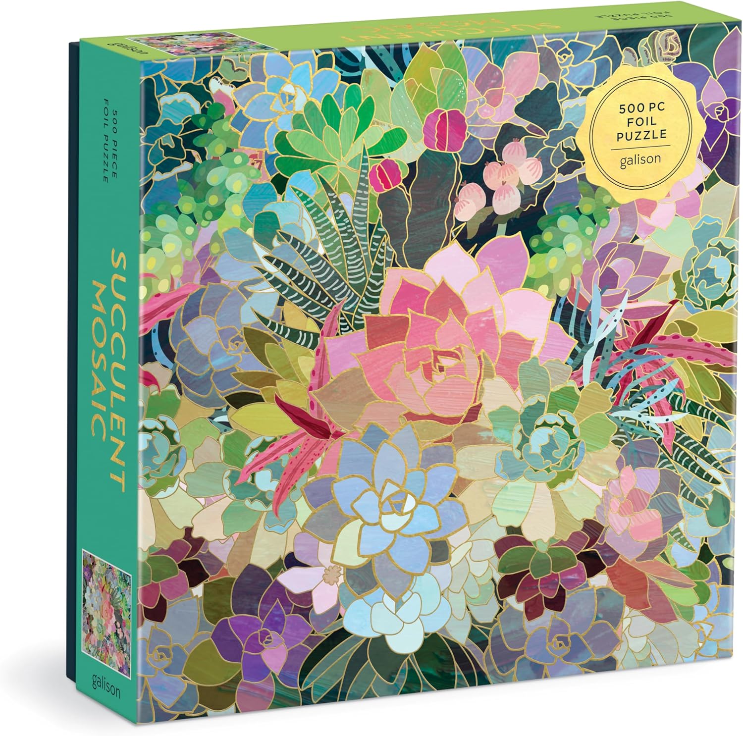 • 500-PIECE PUZZLE – The Succulent Mosaic 500 Piece Foil Puzzle from Galison is the perfect amount of exciting and challenging for hours of puzzling fun. The box includes an insert with the full puzzle image for reference.